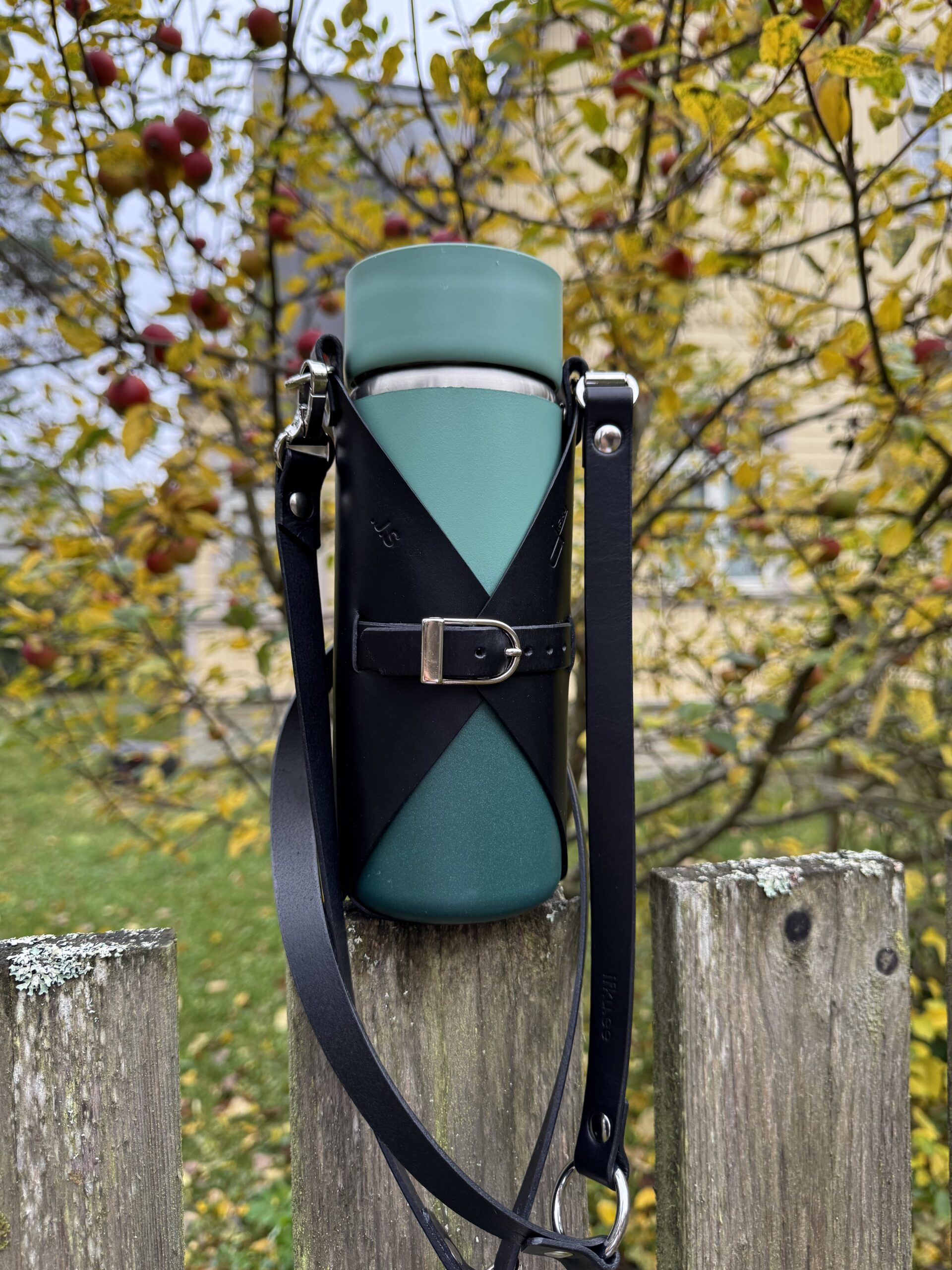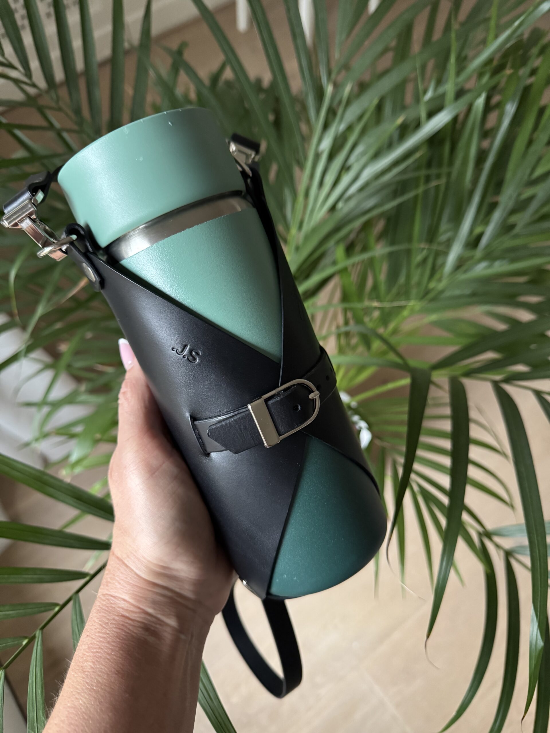 Turvaline kinnitus – tugev karabiin ja vastupidav rihm hoiavad pudelit kindlalt.